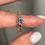 Geltono aukso 585 žiedas su natūraliu tanzanitu. Organinės formos ir subtiliai žėrintis akmuo kuria išskirtiną, tačiau elegantišką juvelyrikos akcentą.